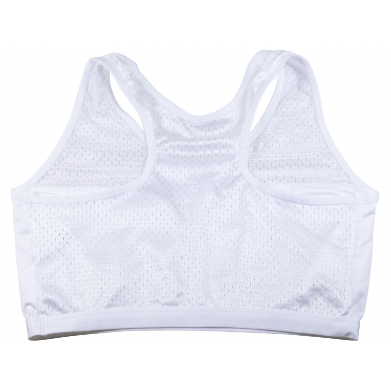 Top na ochranu hrudníku. Je vyroben z 90% tactelu a 10% elastanu. Dodáváme ve variantě bílé a černé. Do chrániče doporučujeme dokoupit vycpávky Cool guard cups.