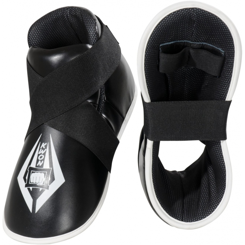 KWON anatomicky tvarovaný chránič nártu je vyroben z vinylu. Uvnitř chrániče je pěnová vložka, díky které chránič dobře pruží. Chránič lze utáhnout pomocí suchých zipů. Chránič má vysoce kvalitní podešev, vnější materiál je vyroben z vinylu. Perfektně se hodí na kickbox.