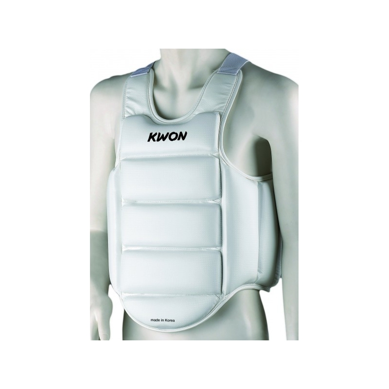 Vesta na trénink KWON má elastické pásky a suché zipy na zádech pro lepší přilnutí k tělu. Vyrobena v souladu s pravidly WKF.