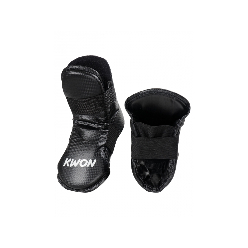 Se zapínáním na suchý zip. Jsou vyrobené ze syntetické kůže s pěnovou výplní. Jsou lehce lesklé. KWON chrániče nártu mají široký elastický pásek před podrážku.