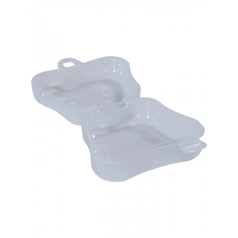 Průhledná krabička na uložení chrániče na zuby po soutěži nebo tréninku.