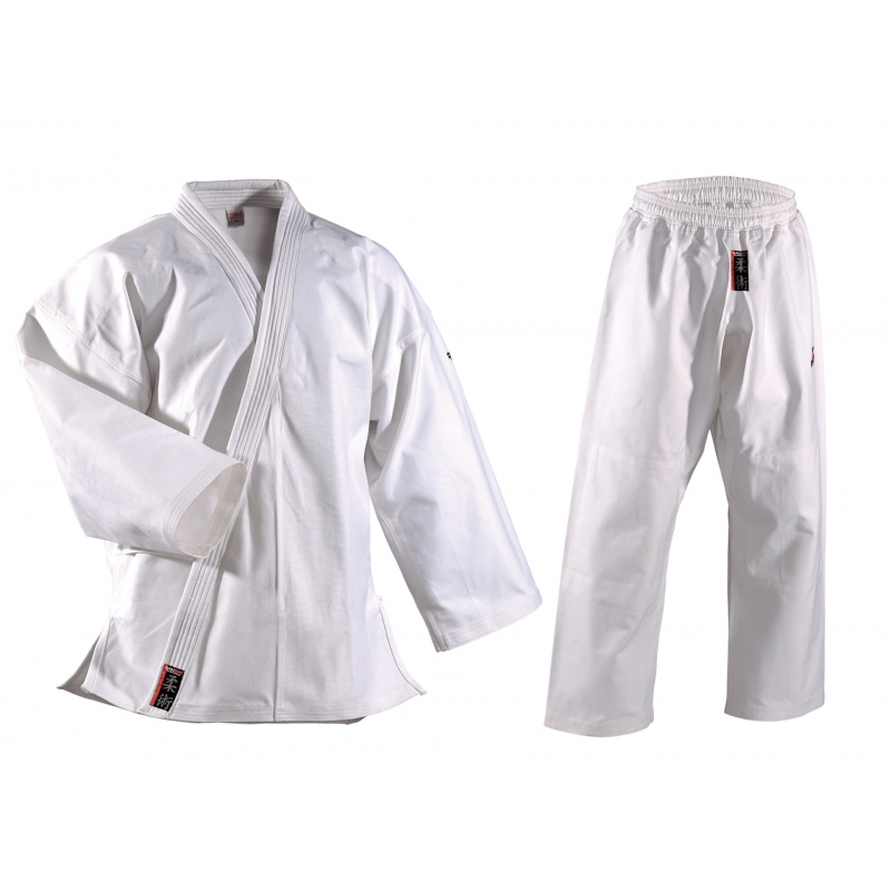 Ju Jutsu kimono s gramáží 14 oz. je vyrobené z těžké 100% bavlny s pohodlným závodním střihem. Kimono je navrženo tak, aby padlo jak Ju-Jutsu začátečníkům, tak i pokročilým studentům nebo trenérům. Kalhoty jsou vybaveny elastickým pasem a jsou zesílené na kolenou. Kimono je dodáváno společně s bílým páskem.