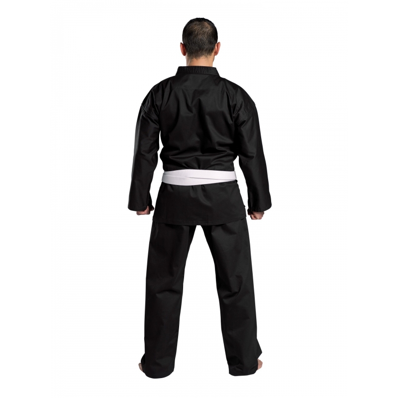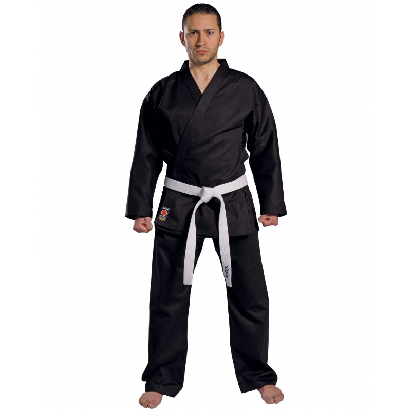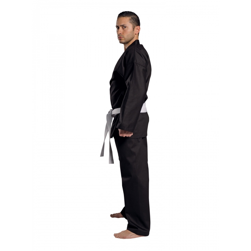 Toto odolné kimono vyrobené ze 100% bavlny je určené pro začátečníky a pokročilé. Kalhoty mají elastický pas a stahovací šňůrku. Černá verze kimona je dodávána v gramáži 8 oz. nebo 12 oz.