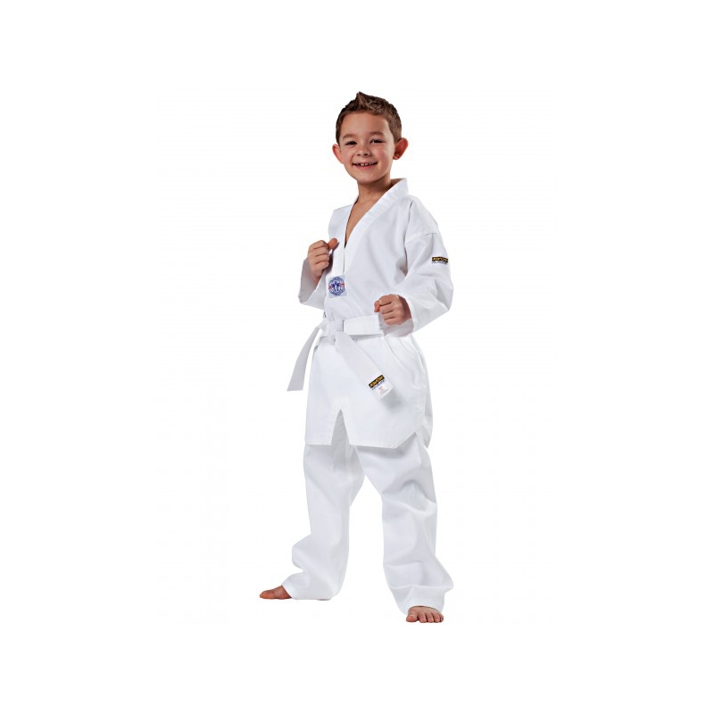 Dobok korejského střihu je velmi pohodlný na nošení. Je vyroben z 55% bavlny a 45% polyesteru. Kabát má u krku střih do V podle WTF. Kalhoty jsou elastické se stahovací šňůrkou v pase a mají všitý kopací klín pro lepší svobodu pohybu. Dobok je dodáván společně s bílým páskem.