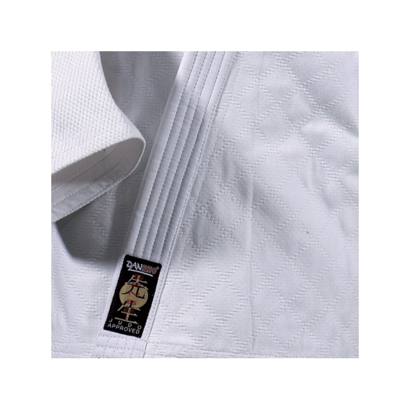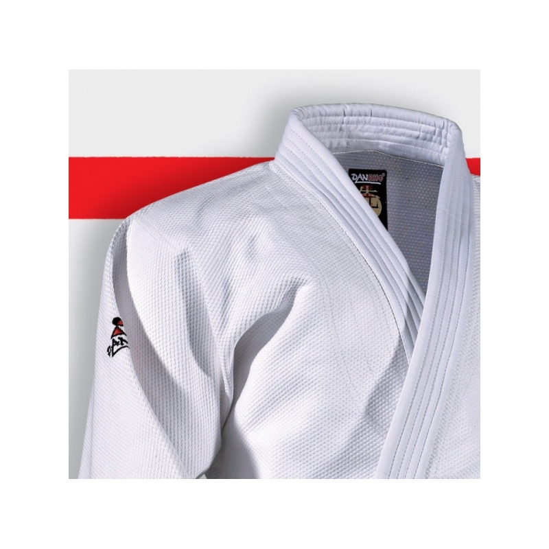 DANRHO SENSEI bílé je středně těžké kimono určené na závody a tréninky s gramáží 750g/m² s vylepšeným střihem. Je vyrobené ze 100% bavlny. Kabát je dvojitě tkaný.