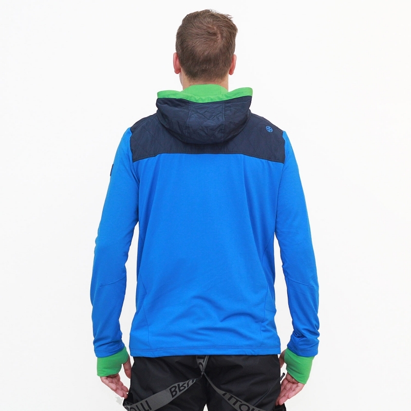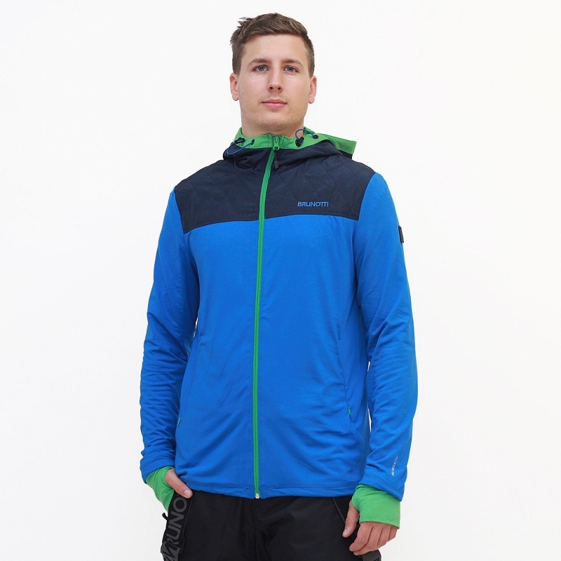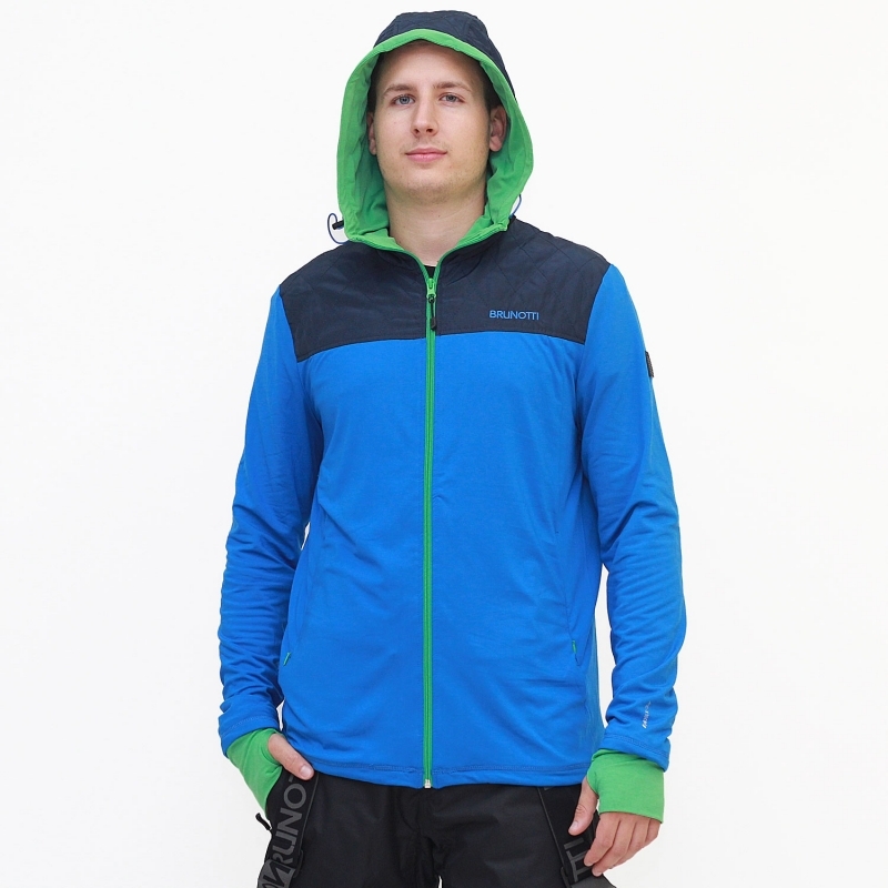 Stylová teplá fleecová pánská mikina BRUNOTTI. Ideální pro sportovní aktivity, ale i jako spodní vrstva pod lyžařskou bundu. Látka disponuje základní prodyšností 1000, která při fyzické aktivitě odvádí tělesnou vlhkost na povrch. Mikina má spodní zateplenou vrstvu. Kapuce a svrchní část mikiny je v kontrastní barvě. Mikina má dvě kapsy na zip.