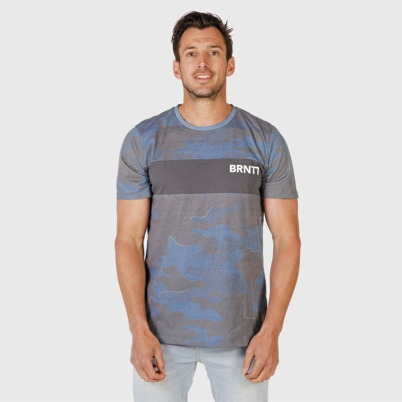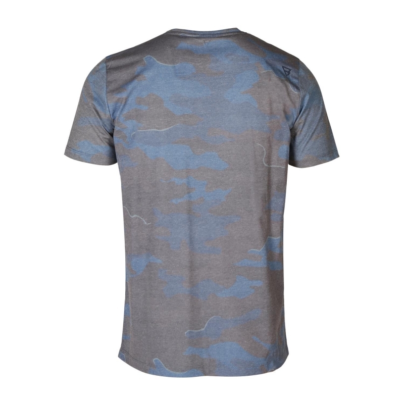 Brunotti letní pánské tričko Maxwell s krátkým rukávem je vyrobeno z materiálu - kombinace bavlny a polyesteru. Tričko má celopotisk jemné modré kamufláže doplněné tmavším pruhem s bílým nápisem zkráceného názvu Brunotti na přední straně. Tričko je běžného střihu a standardní délky.