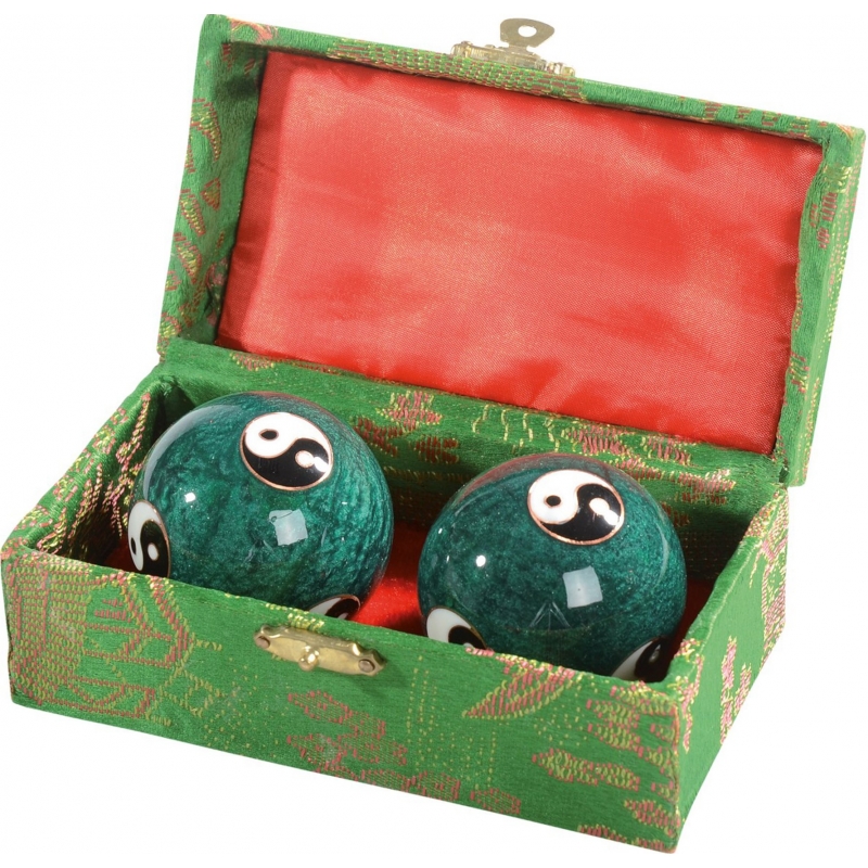 Čínské koule jsou určeny na uklidnění těla a mysli. Při kroužení koulí v rukou, zvýšíte tak obratnost a posílíte svaly na rukou. Čínské koule jsou se symbolem Yin Yang. Prodáváme v páru s krabičkou.
