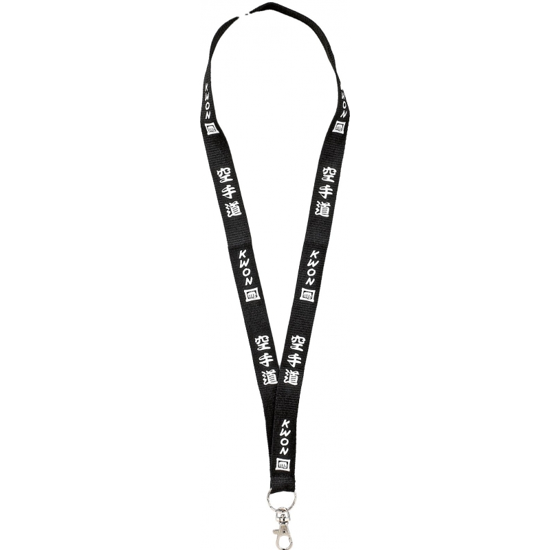 Šnůrka na krk KWON se znaky karate je vyrobená ze 100% polyesteru. Je dlouhá 45 cm.