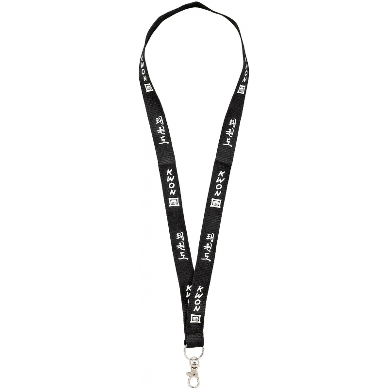 Šnůrka na krk KWON se znaky taekwondo je vyrobená ze 100% polyesteru. Je dlouhá 45 cm.