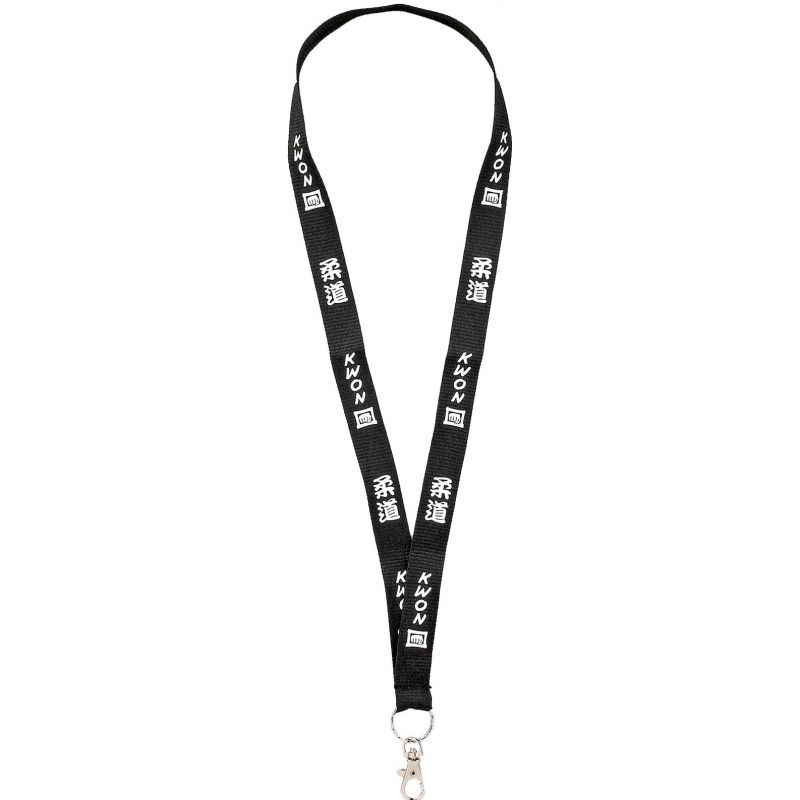 Šnůrka na krk KWON se znaky juda je vyrobená ze 100% polyesteru. Je dlouhá 45 cm.