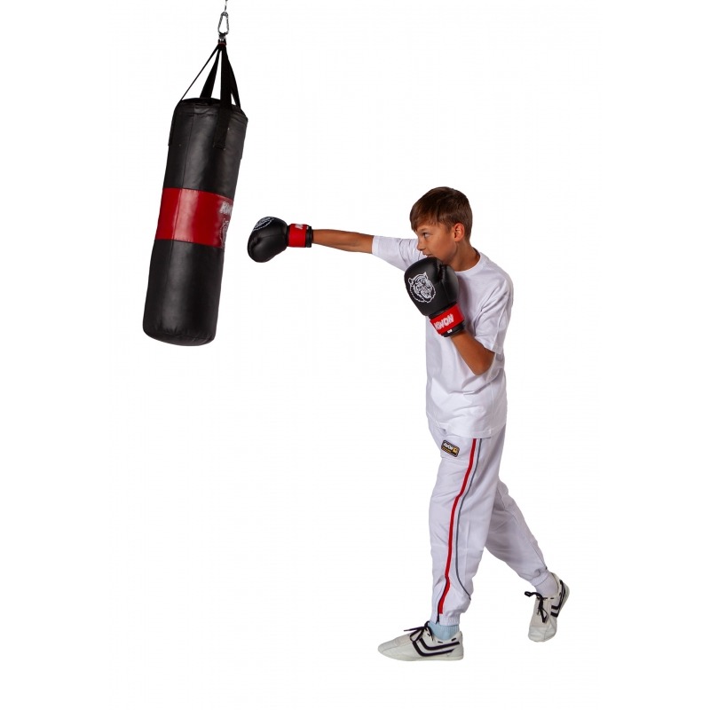 Je vyroben ze 100% umělé kůže v KWON kvalitě. Vnitřek je naplněn extra malými kousky bavlny pro lepší absorpci nárazů. I tak doporučujeme vždy používat rukavice, aby se zamezil počet zranění. Společně je dodáván s kovovým řetězem na pověšení. Je vhodný pro děti od 10 - 14 let. Ve středu pytle je motiv tygra. Doporučujeme používat s rukavicemi Junior Tiger, které jsou dostupné v červené nebo černé barvě.
