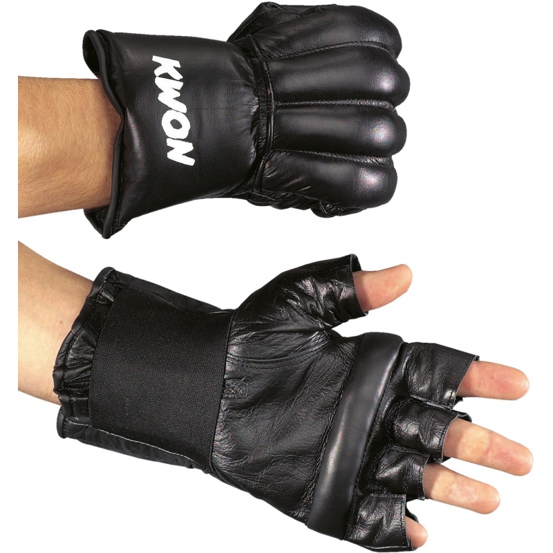 Rukavice KWON jsou vyrobeny z pravé kůže. Pro efektivnější trénink mají rukavice polstrování přes hřbet ruky a na prstech.