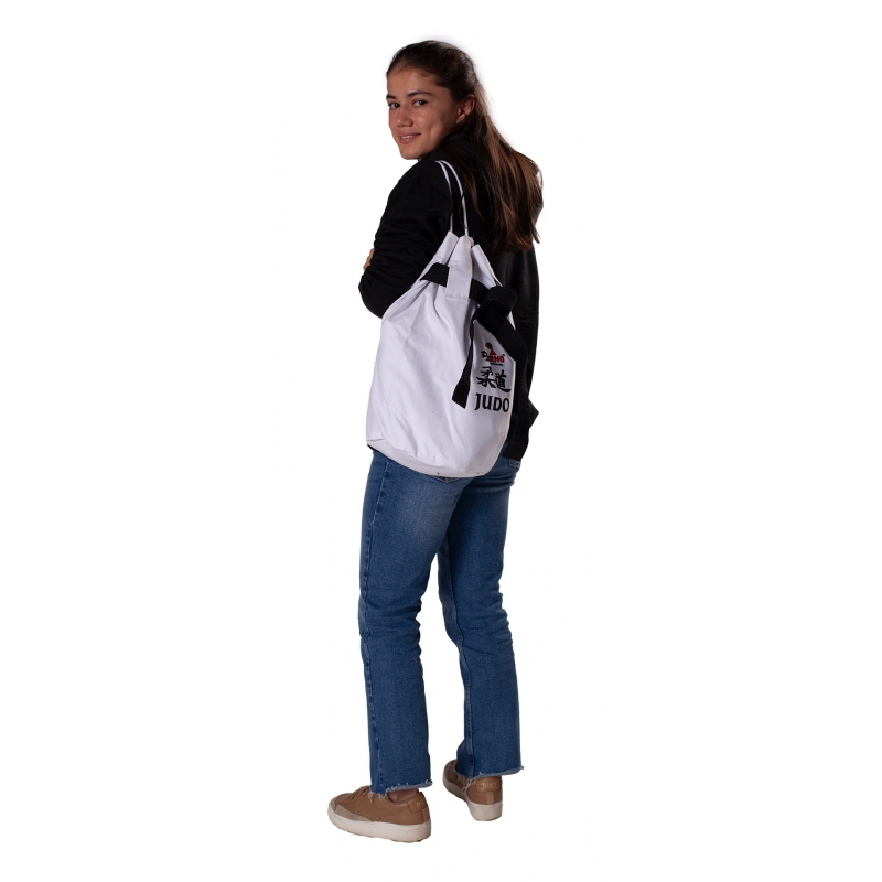 Pytel DANRHO bílý s motivem juda je ideální volbou na tréninky. Do tohoto batůžku se skvěle vejde dětské kimono. Backpack DANRHO v bílé barvě je vyroben z kvalitní, pevné 100% bavlny. Design batůžku evokuje judistické kimono - batoh se utahuje černým páskem. Judo pytel DANRHO má nastavitelné popruhy.