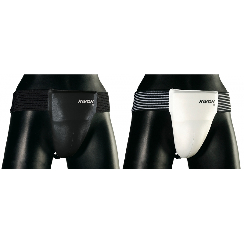 Suspenzor s tvrdým plastovým kalíškem je pokryt vinylem a elastickým pasem (šířka 6 cm). Má zapínání na tkaničky.