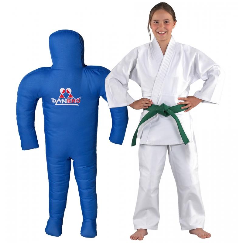 Tréninkový panák na judo s modrým nylonovým vnějším pláštěm a vnitřní výplní z lehkého materiálu. Báječně se hodí pro děti a mládež na odhozy, držení, apod. Vzadu na panákovi jsou 2 velké popruhy pro bezpečné uchycení.