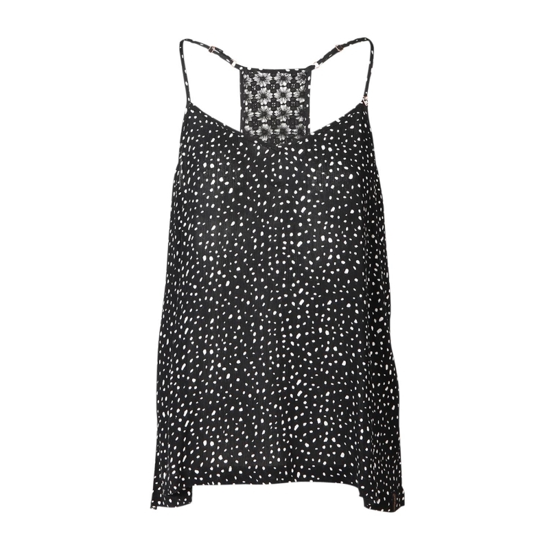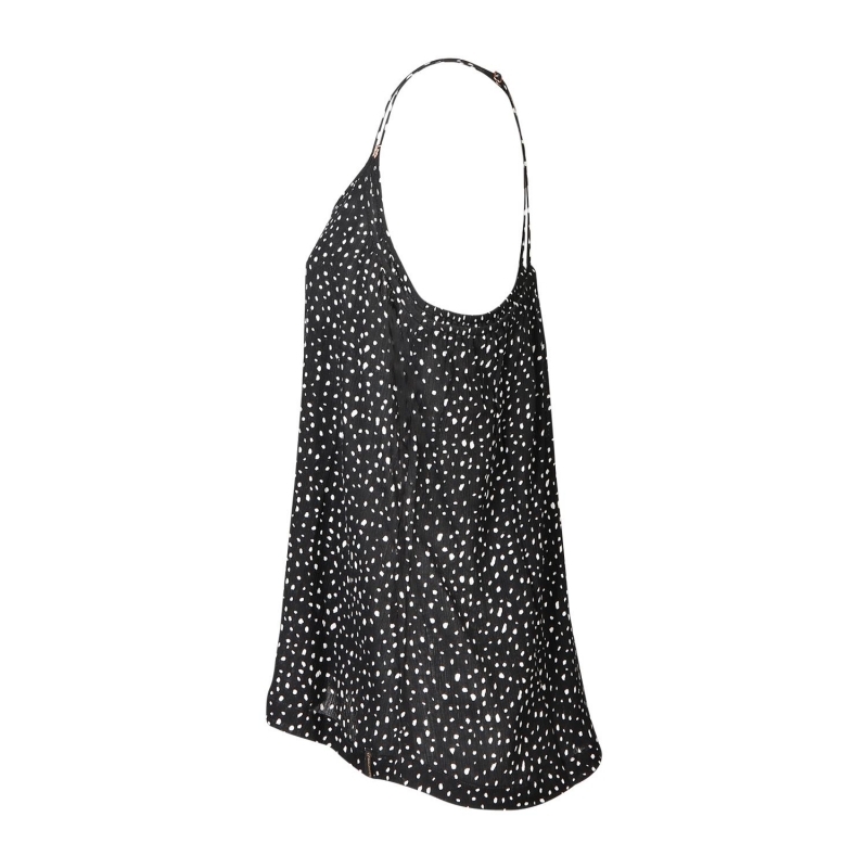 Pěkný volně padnoucí top A-linie Brunotti Gomba má nastavitelná ramínka a krajku na zadní straně. Top Gomba je vyroben z umělého hedvábí s celopotiskem v módní kombinaci černá/bílá.